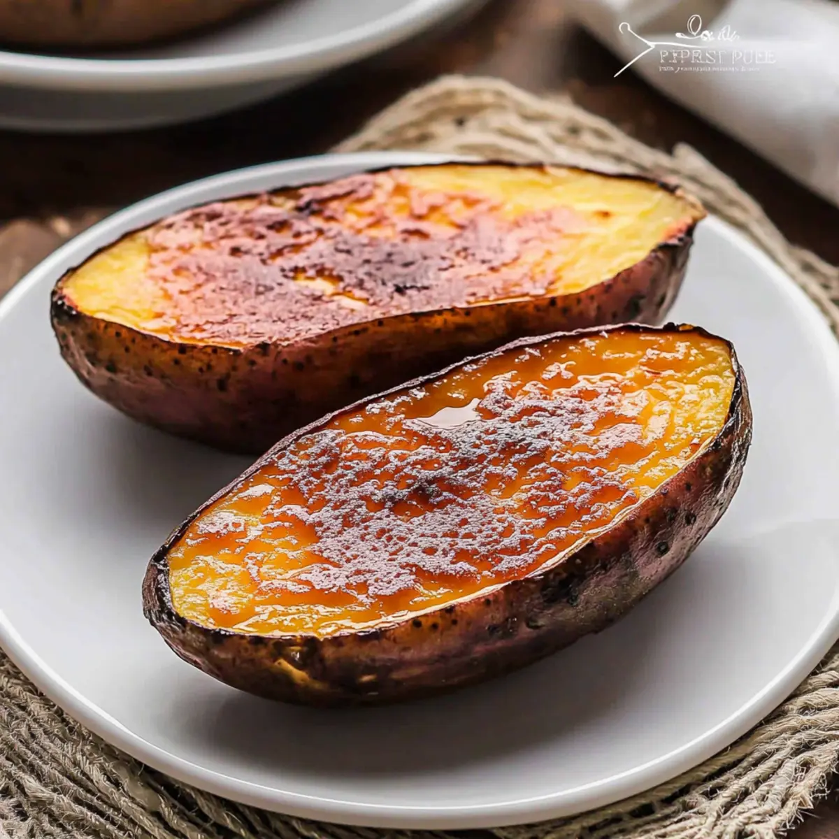 Assemble and Caramelize: Fill the sweet potato shells with custard, then sprinkle 1 teaspoon of caster sugar on top of each. Using a blowtorch, caramelize the sugar until it forms a beautiful dark amber crust—watch it closely to avoid burning.